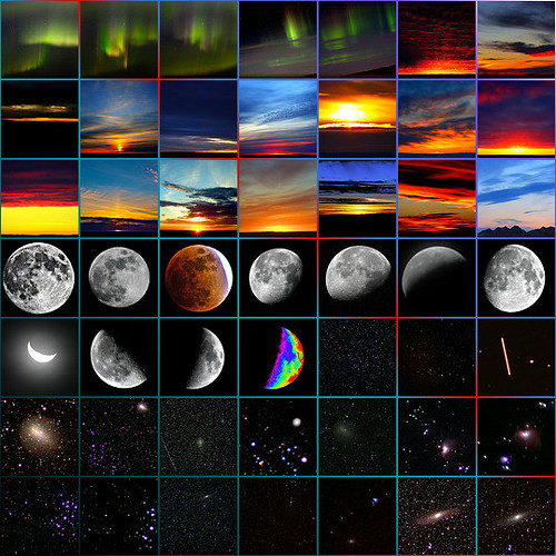 This is a collage of some of my photos of the skies. Nothing used but a camera; no telescope, though I almost always use a standard photographic tripod.