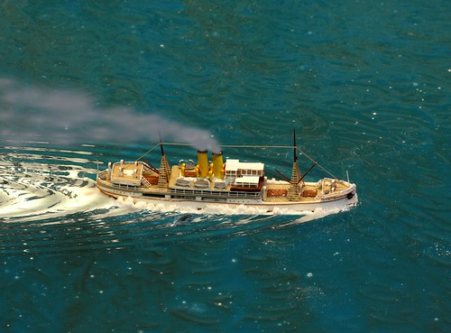 Deb created the "sea" out of stained glass, and I mounted it in a box to protect it. The ship is about 2 and 3/4ths inches long; the wake is powdered flour and an application of WinImages' "radial wave" effect using layers to separate the ship from the water. The "smoke" is also a WinImages effect. I took the shot with a Canon EOS 40D and Canon's 100mm macro lens. For more details, just click on the image.